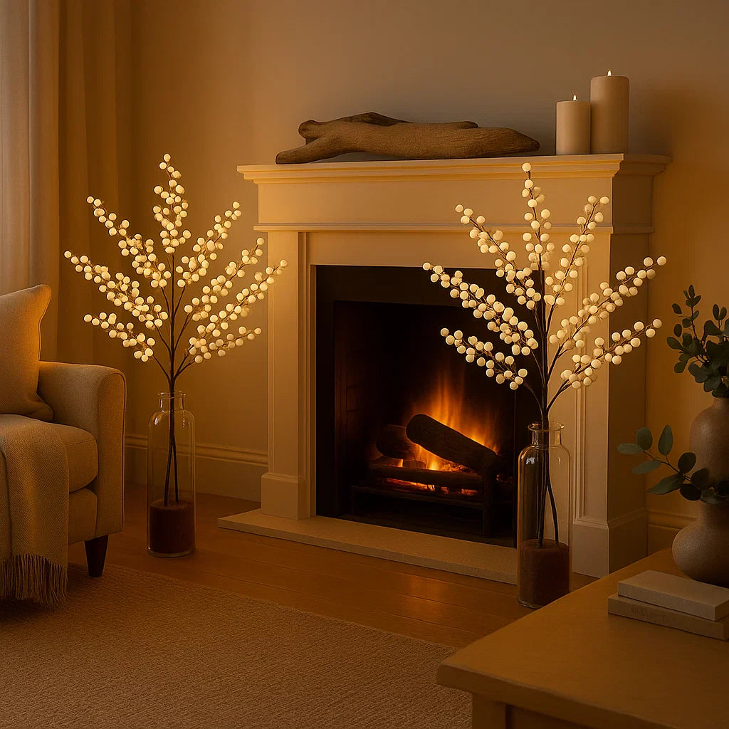Softly glowing and beautifully understated, this pre-lit artificial berry branch brings a touch of natural elegance to your home. Clusters of white berries are delicately intertwined with warm white LEDs, creating a gentle radiance that feels both festive and refined. Ready to display straight from the box, it’s a simple way to add a sculptural accent to any space.