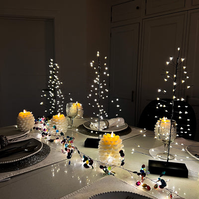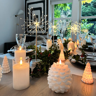 3x Starburst Table Lamps & 12x Glass Candle Pack 2x Snowberry garlands