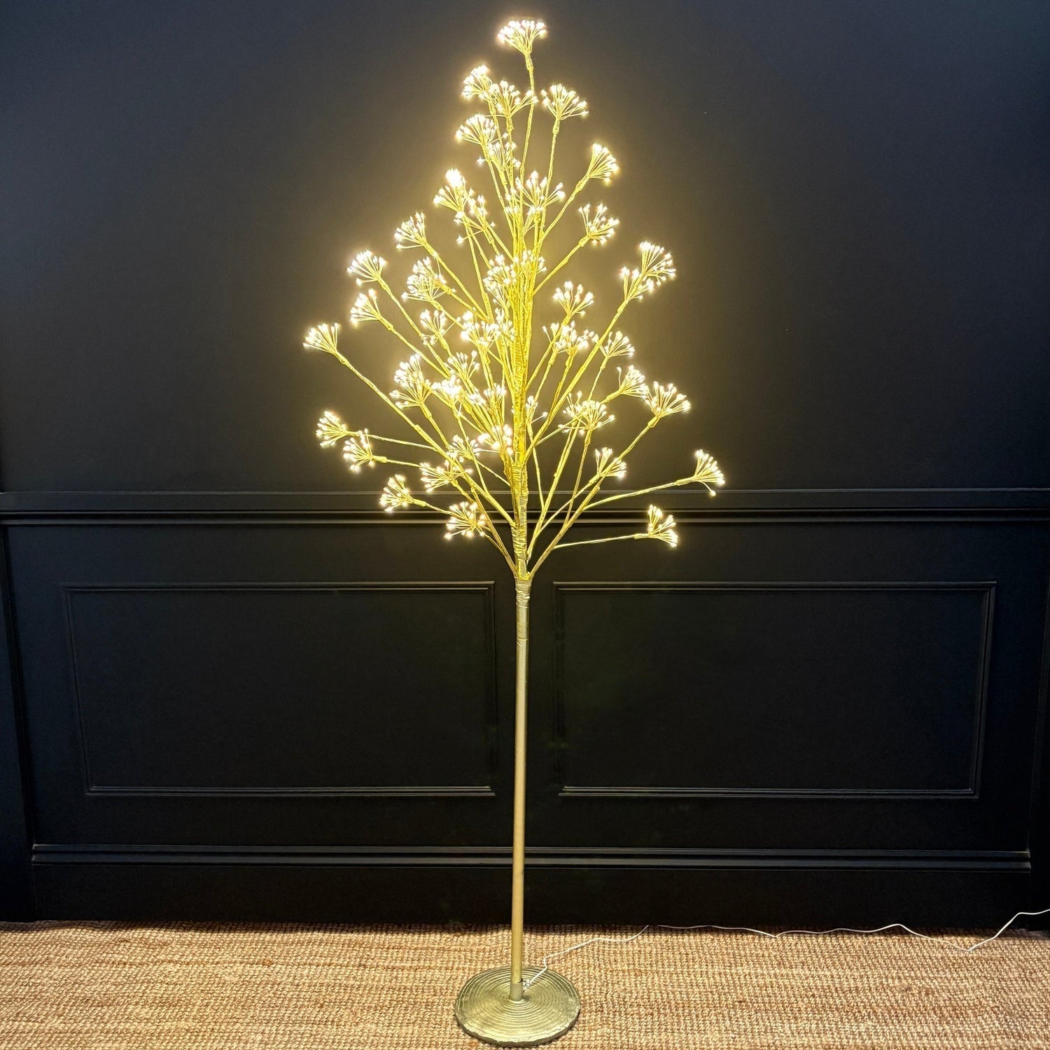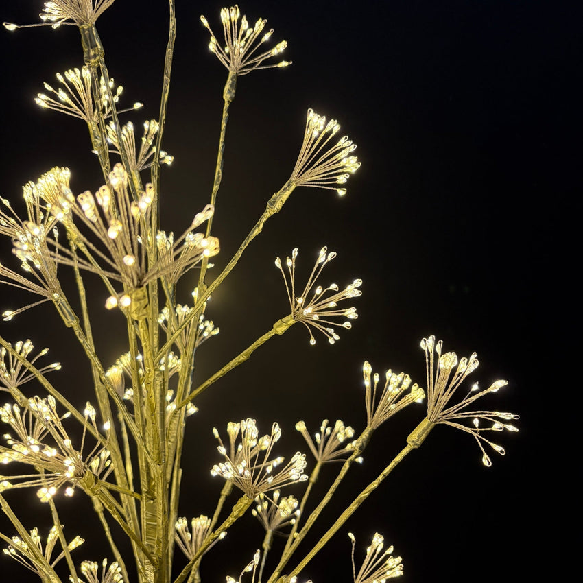 This Gold Christmas Tree embodies the interplay between tradition and modernity, serving as a symbolic centrepiece within seasonal rituals of gathering and celebration. Its gold-toned branches, illuminated by clusters of micro-dot LED lights, evoke both abundance and radiance, resonating with long-standing associations of light, warmth, and communal festivity during the winter season.